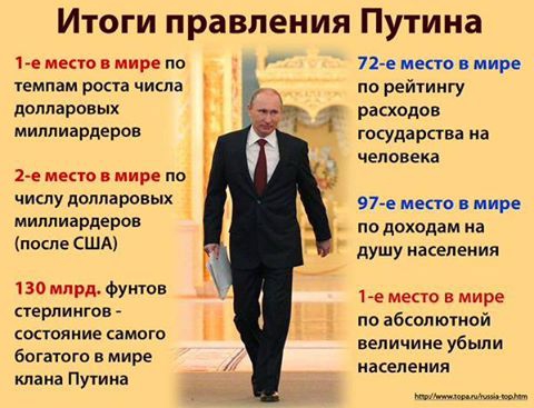 «Еще не пришло время подводить итог президентства Путина. Историки сделают это в нужное время и на свежую голову. Оно полно контрастов: Россия, несомненно, вновь обрела свою самоуверенность в сообществе наций — и многие россияне верят в это, ее ВВП достиг высшей точки, занимая позицию между Италией и Индонезией, что довольно далеко от трех гигантов: США, Китая и Европы. Несколько дипломатических успехов были отброшены назад вездесущим «газпромовским» порядком и мелкими трещинами, возникшими из-за взятия заложников в московском театре в 2002 году, в Беслане в 2004-м, во время трагедии с подлодкой «Курск» (2000), и почти стерты блефом в Крыму», — пишет Фаш.