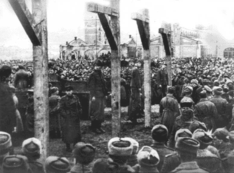 18 декабря 1943 года после обвинительной речи военного прокурора Н.К.Дунаева Военный трибунал фронта приговорил всех четверых обвиняемых к смертной казни через повешение. «Приговор окончательный и обжалованию не подлежит». Приговор был приведен в исполнение на следующий день на Базарной площади, где собралось свыше сорока тысяч харьковчан. Пока шла казнь, толпа на площади сосредоточенно молчала.